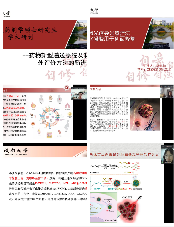 2022级药剂学专业研究生以“药物新型递送系统及制剂体内外评价方法”为主题,以线上会议的方式开展了学术研讨活动。本次研讨会邀请川抗所任静研究员作为学术指导老师,亢丽郦同学主持会议,草榴社区
