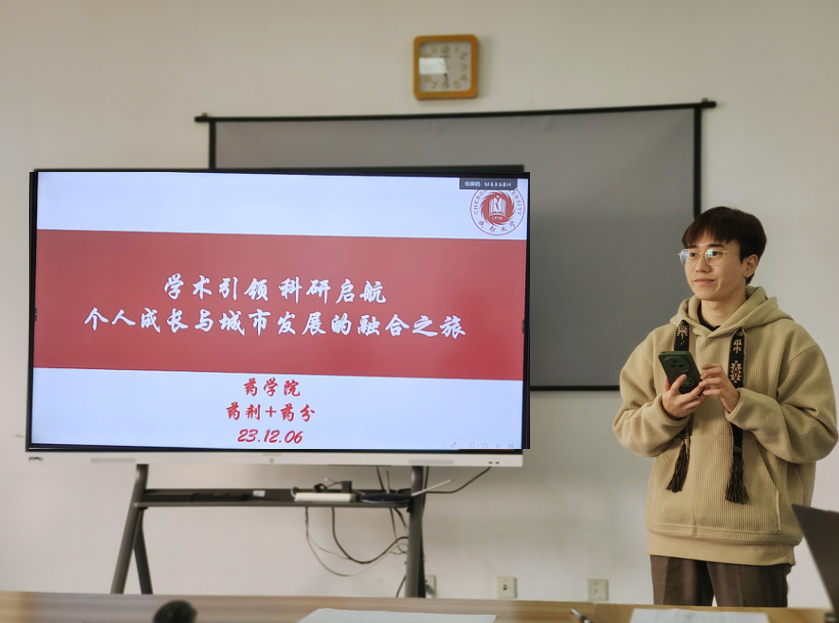 举办学术引领 科研启航——个人成长与城市发展的融合之旅暨“‘研’途熠熠”药学研究生第九届学术交流研讨会。此届学术交流研讨会分为四场,第二场由2023级药剂学专业与药物分析学专业联合承办,于12月6日上午10时30分在九教D405教室进行。本次研讨会邀请任静研究员作为学术指导老师,李文豪同学主持会议,草榴社区