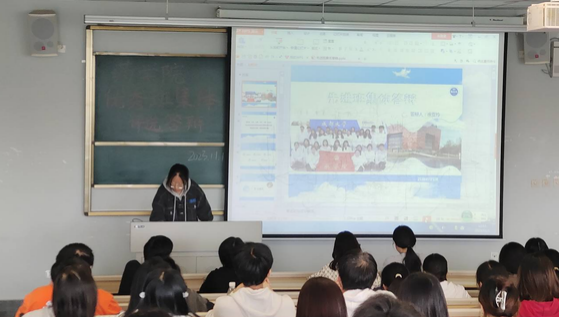 主办的2022-2023学年先进班集体评选答辩于12338教室举办。出席本次活动有学院党委副书记黄金竹老师、李正文老师、乐燕老师、王倩老师以及参加评选班级的班长,并邀请20-23级每班三名同学担任评委出席活动。