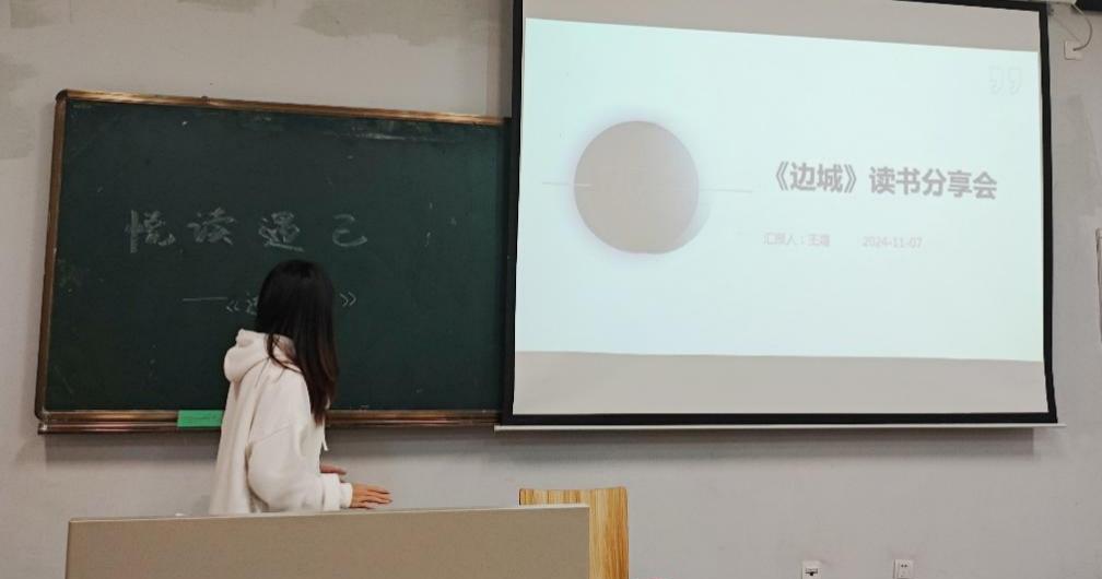 12教学楼开展了一次主题为“文学之光,照亮心灵之旅”的阅读活动。本次活动由王霜同学担任主讲人,旨在通过分享和交流,引领同学们深入探索沈从文先生的经典之作《边城》,感受其独特的文学魅力,激发同学们对文学和生活的热爱。
