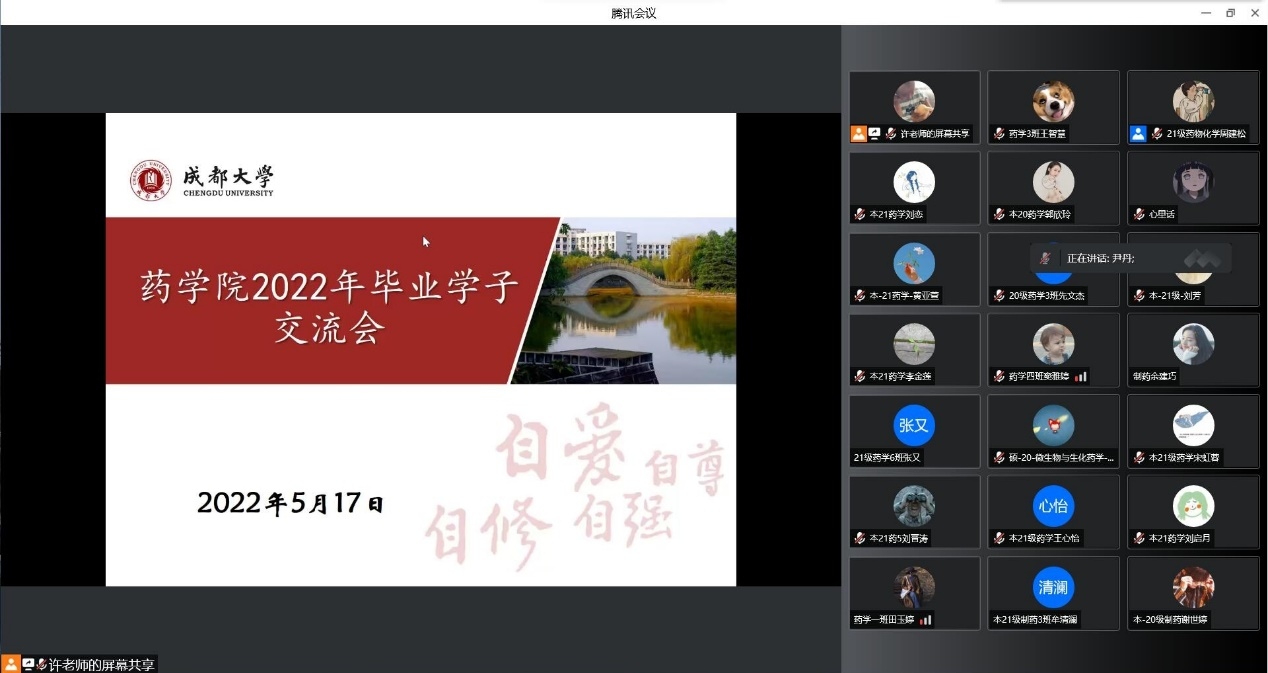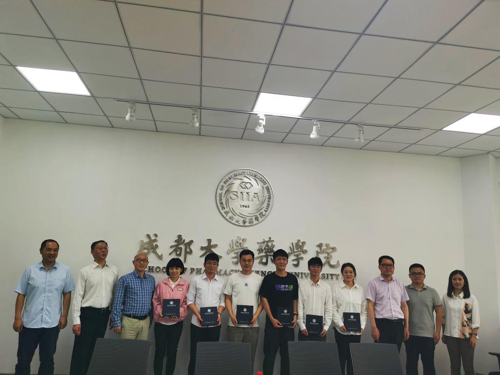 毕业座谈会上,老师们亲手为毕业生送上礼物——定制毕业礼盒,给每一位毕业生留下温馨的特别记忆!毕业学子交流会上,毕业生将三年宝贵的学习、科研和成长经验无私传授给师弟师妹,药苑之星, 薪火相传!毕业授位仪式,王清远校长、唐毅谦副校长亲自为每位毕业研究生授位,拨流苏;毕业合影留念,最后一次和领导、亲爱的导师和可爱的同学拍一张合照,留一份回忆。