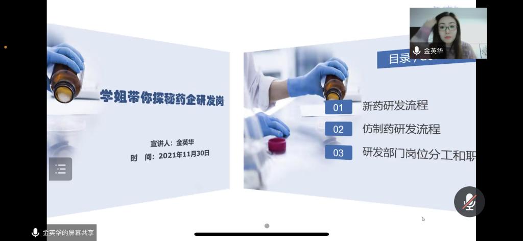 三位校友分别以药企研发需求和现状,外企销售魅力以及国外博士留学之路为宣讲主题进行了分享交流。活动历时近两个小时,校友们为在读学子分享了自己在毕业时面临“左转深造”与“右转就业”的选择,以及工作情况、岗位需求及未来发展等。会后,同学们积极提出问题,与校友们就自己感兴趣的内容进行了深入交流。活动中,校友们语言生动,风趣幽默,分享让在场同学们获益匪浅。