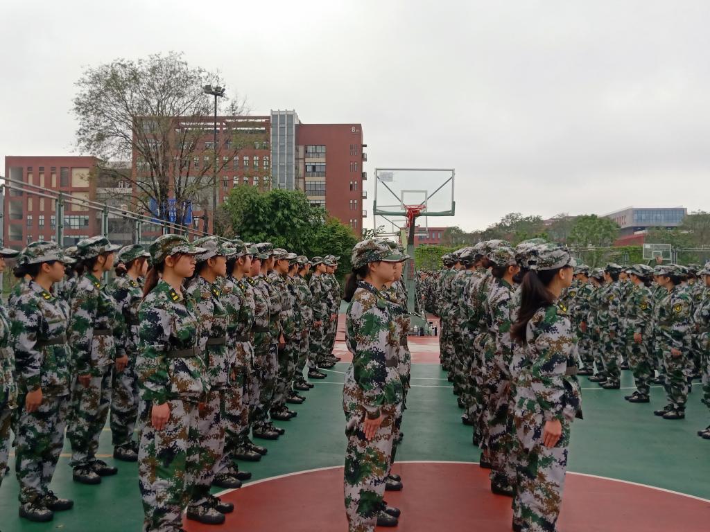 晚上一起唱军歌,大家嘹亮的歌声在篮球场上回响,鲜红的队旗迎风飘扬。小雨飘落,地上留下的一个个小小的格子就是对同学们坚持不懈,不畏艰苦的精神最好的诠释。