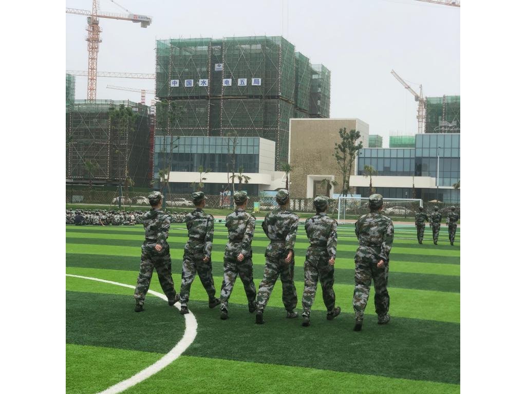 运动场上,同学们跟随教官的口令进行军姿和齐步走的训练,看,他们身姿挺拔,听,他们步履铿锵!