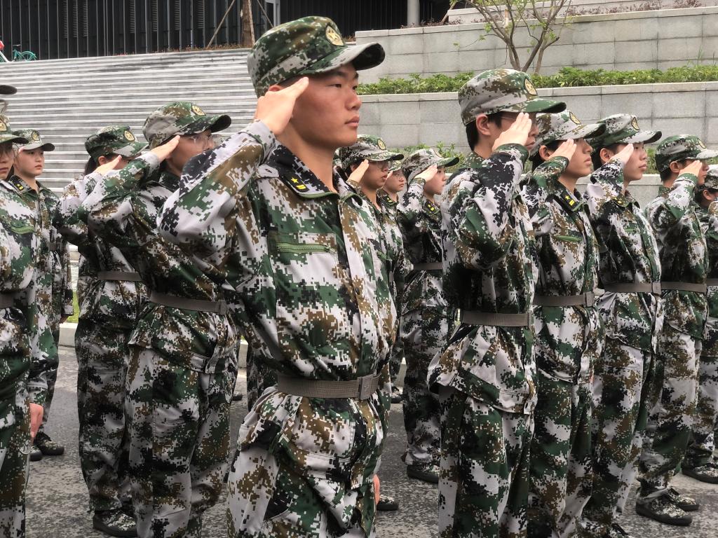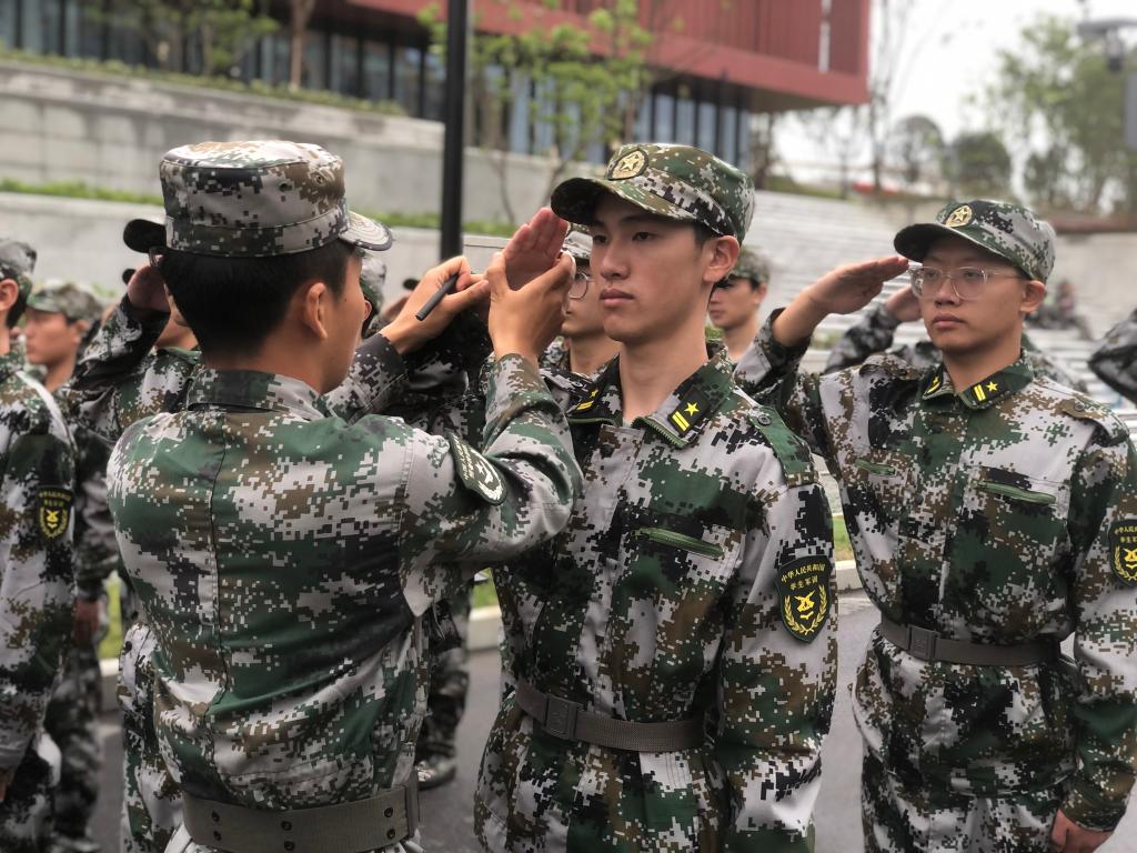 教官们除了加强着装整理、军姿训练等科目的练习,又教会了同学们如何敬军礼。教官们一一为同学们纠正姿势,调整手势高度,让大家正确掌握了如何敬一个标准的军礼。