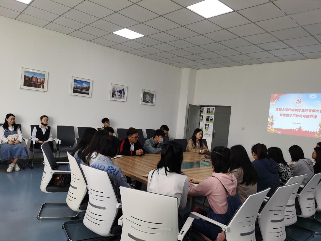 2021年4月21日中午,草榴社区 学生党支部在十陵校区9教D405会议室举行支部大会暨党史学习教育专题党课,学生支部全体党员参会,支部书记许丽佳主持会议并担任主讲。