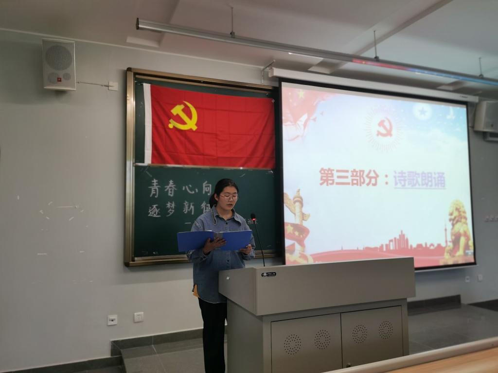 周如意同学深情朗诵现代诗人戴望舒的诗歌《我用残损的手掌》。同学们聆听着诗人对自己遍体鳞伤的痛,感受着诗人对外族侵略的痛恨愤慨、对祖国和人民的同情爱怜,不禁联想到当时的祖国河山破灭、百姓民不聊生,正因为有了伟大的党,才有了今天的美好生活和幸福安宁,进一步激发了同学们爱党、爱国、爱社会主义的巨大热情。