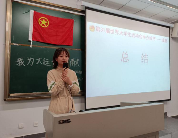 高子涵为本次团日活动作总结,她指出本次团日活动准备充分,主题鲜明,但仍存在一些不足,希望同学们再接再厉,以实际行动为大运会的顺利举行贡献自己的力量。