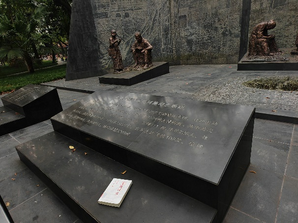 成都人民公园是一座有着浓厚红色血脉的纪念公园,里面记录了辛亥革命和抗日战争相关的重大史实。阅读团队首先参观公园内的成都大轰炸纪念墙。成都大轰炸发生在抗日战争期间,日本为摧毁中华民族的抗战意志,“以炸迫降”,对四川进行了长达6年多的狂轰烂炸,致使成都满目焦土,一片废墟。