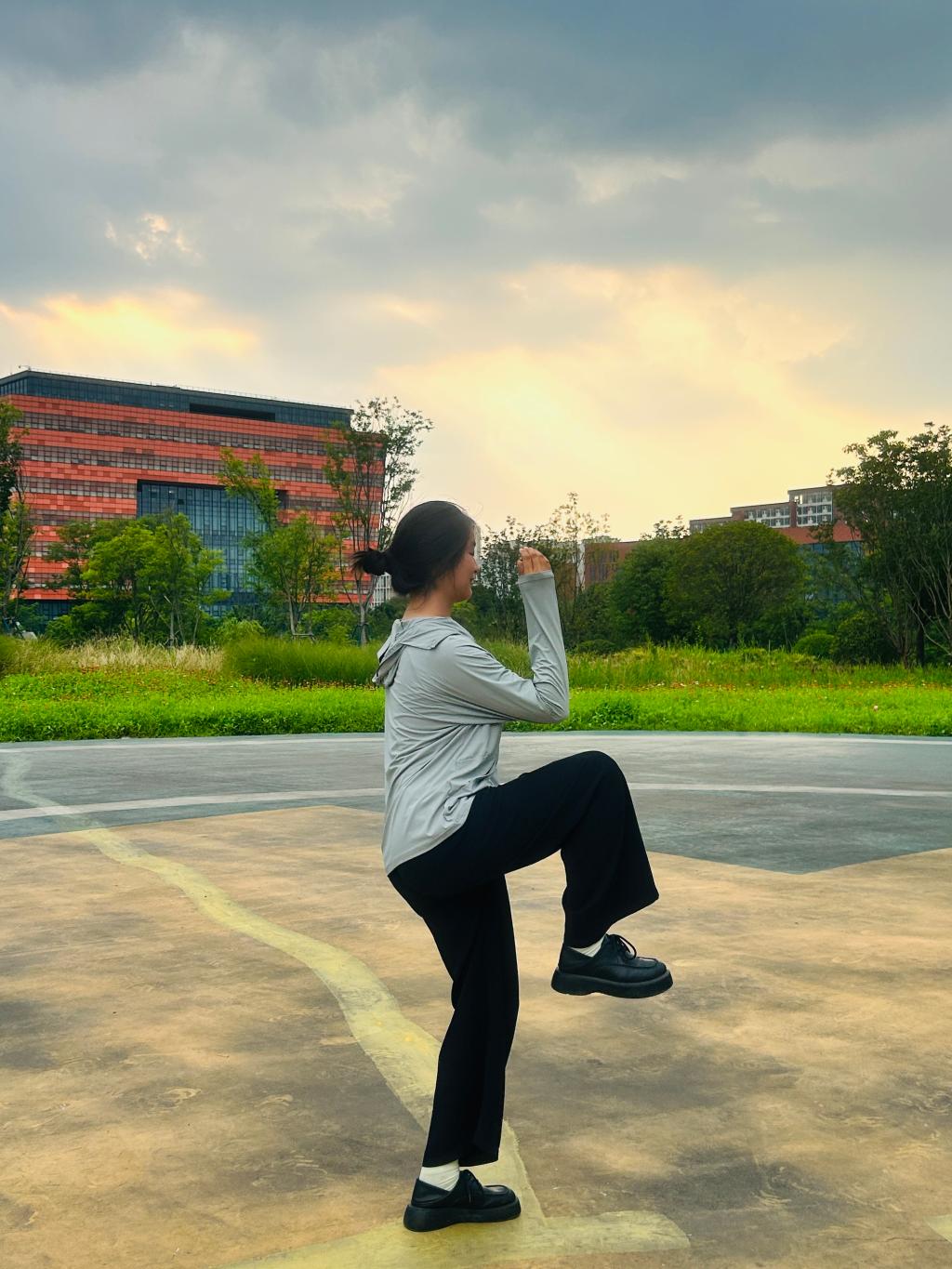 后大运 新跨越 第三届太极拳打卡活动顺利进行,在打卡活动中期间,同学们与学校各处美景同舞。