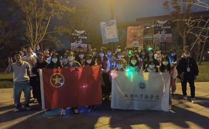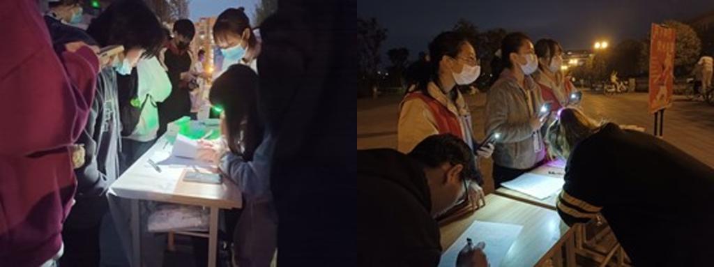 委员会承办的“月下同行,荧光共聚”荧光夜跑活动在乐健山旁开展。活动共吸引来自全校不同学院500余人参加。