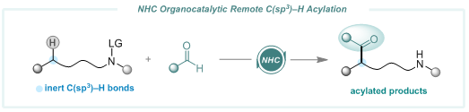 该研究工作的主要内容是利用绿色高效的有机小分子催化手段,实现了以卡宾自由基催化结合1,5-HAT策略,完成酰胺远端C(sp3)-H键的直接酰化反应,进一步丰富了惰性C(sp3)-H的活化策略(如下图所示)。上述研究成果发表后,也应邀在Wiley官方公众号,X-MOL、CBG等国内专业科研媒体进行了相关的专题报道。除此之外,该研究工作得到了国家自然科学基金、龙泉英才计划以及草榴社区