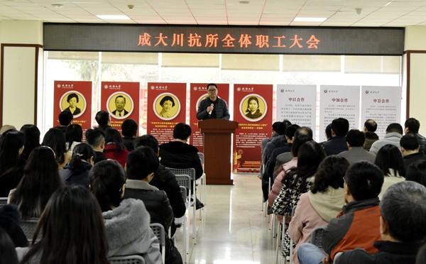 本网消息(文/毛玉萍,图/龙通斌)12月17日下午,川抗所组织召开全体职工大会,全体教职工及学校党委组织部有关负责同志参加会议,会议由党委书记阳东主持。