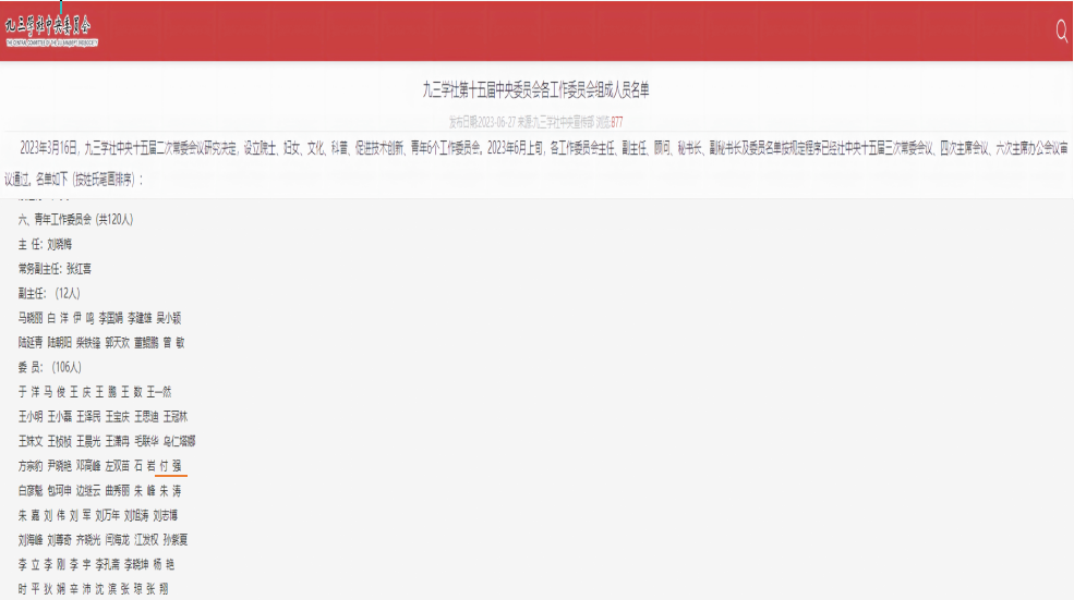 近期九三学社第十五届中央委员会各种工作委员会组成人员名单公布,草榴社区 、川抗所付强教授当选为九三学社第十五届中央委员会青年工作委员会委员。
