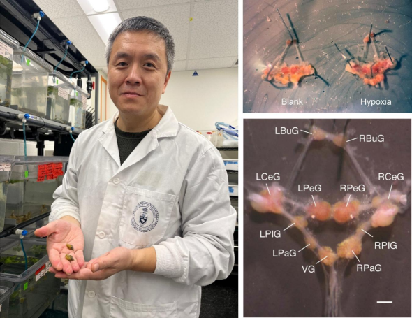 图2.张波教授在维护Lymnaea stagnalis培养系统;该动物模型在神经损伤保护及抗感染方面有着独特的研究价值