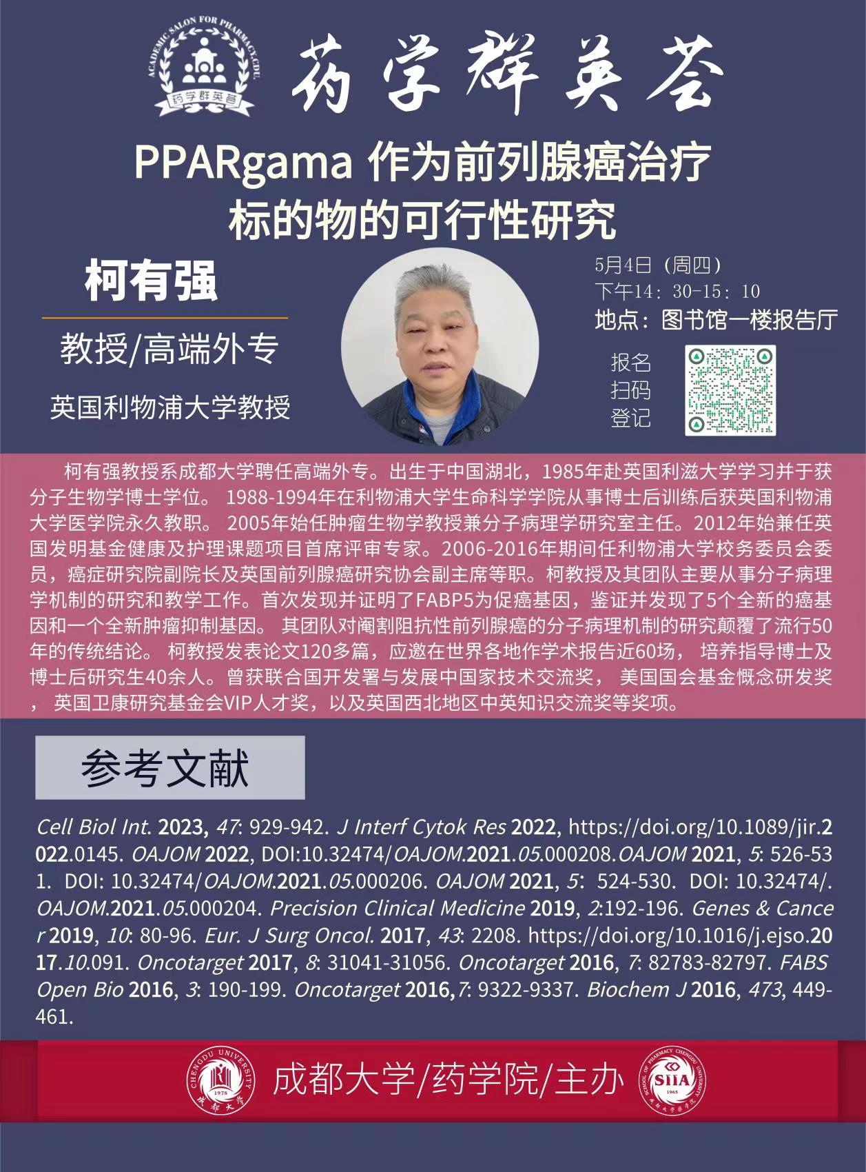【药学群英荟】柯有强:PPARgama 作为前列腺癌治疗标的物的可行性研究