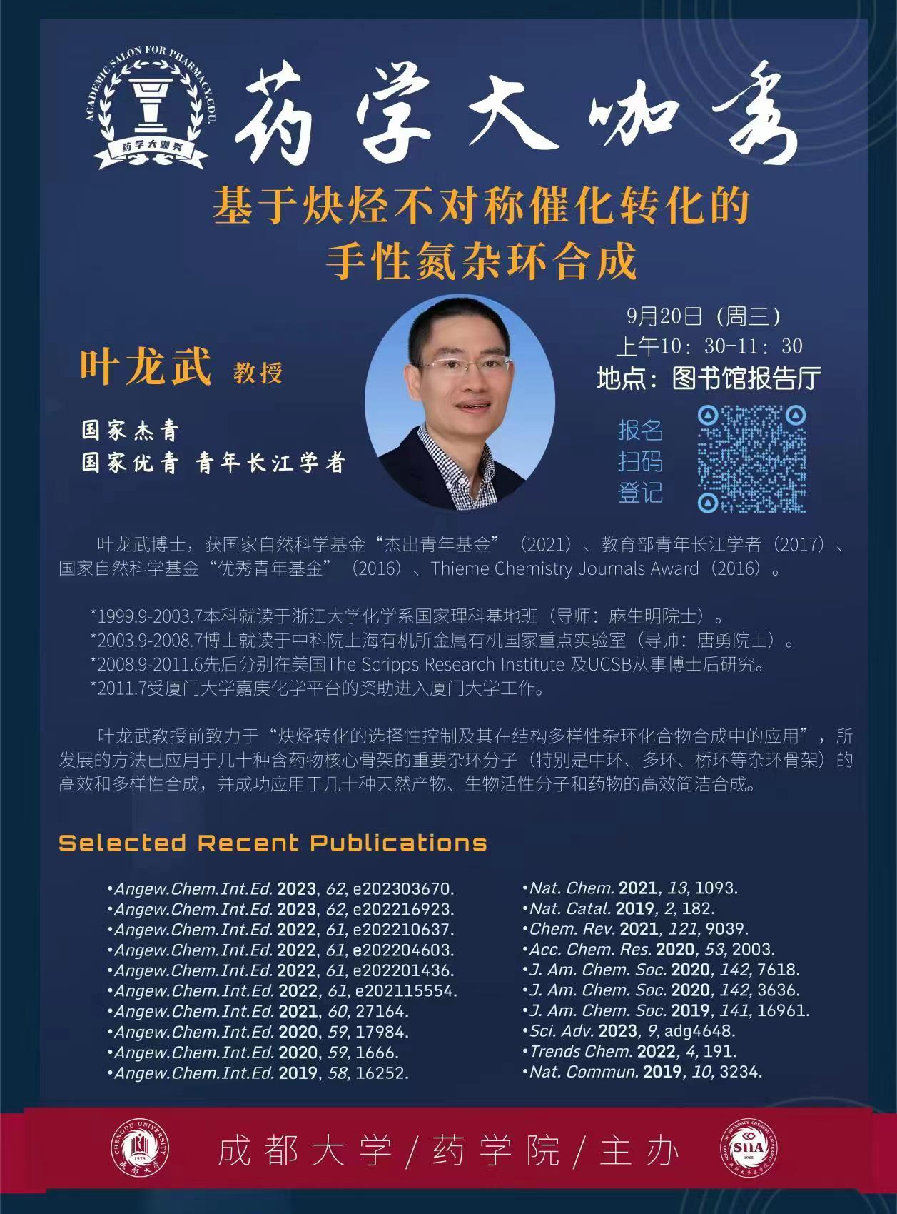 药学大咖秀丨叶龙武:基于炔烃不对称催化转化的手性氮杂环合成