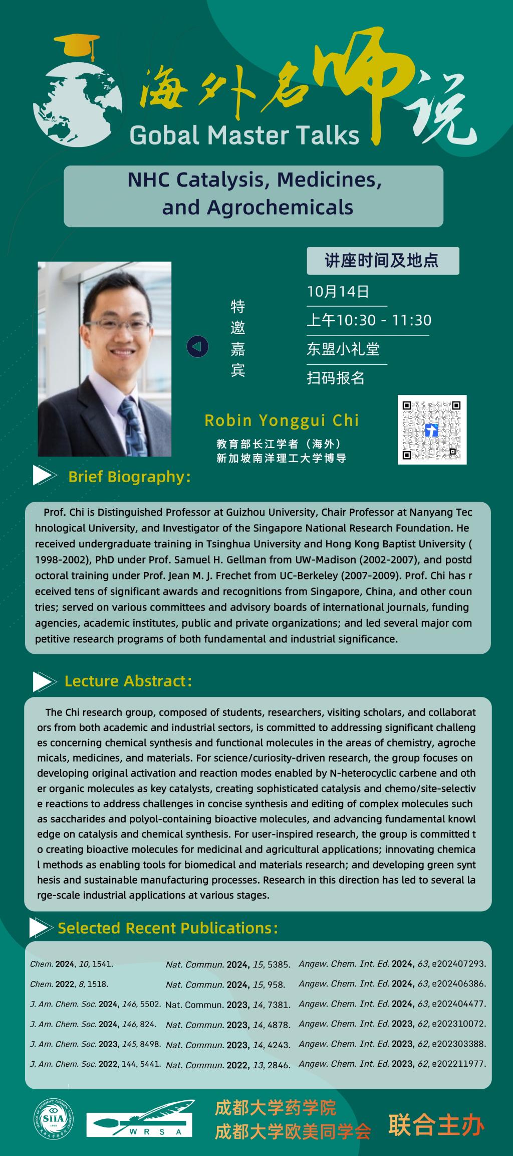 海外名师说丨Robin Yonggui Chi:NHC Catalysis, Medicines, and Agrochemicals