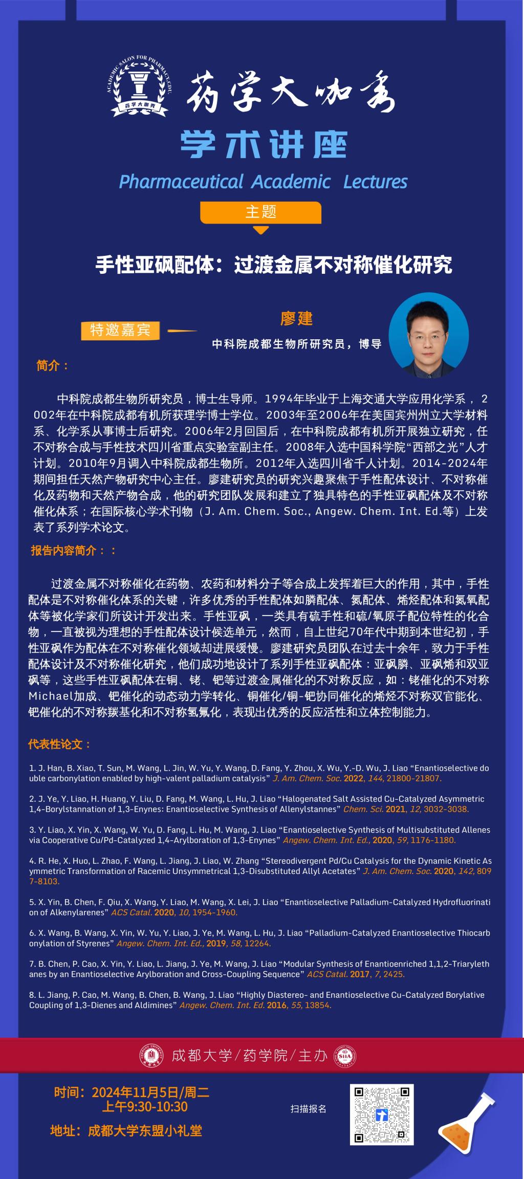 药学大咖秀丨廖建:手性亚砜配体:过渡金属不对称催化研究