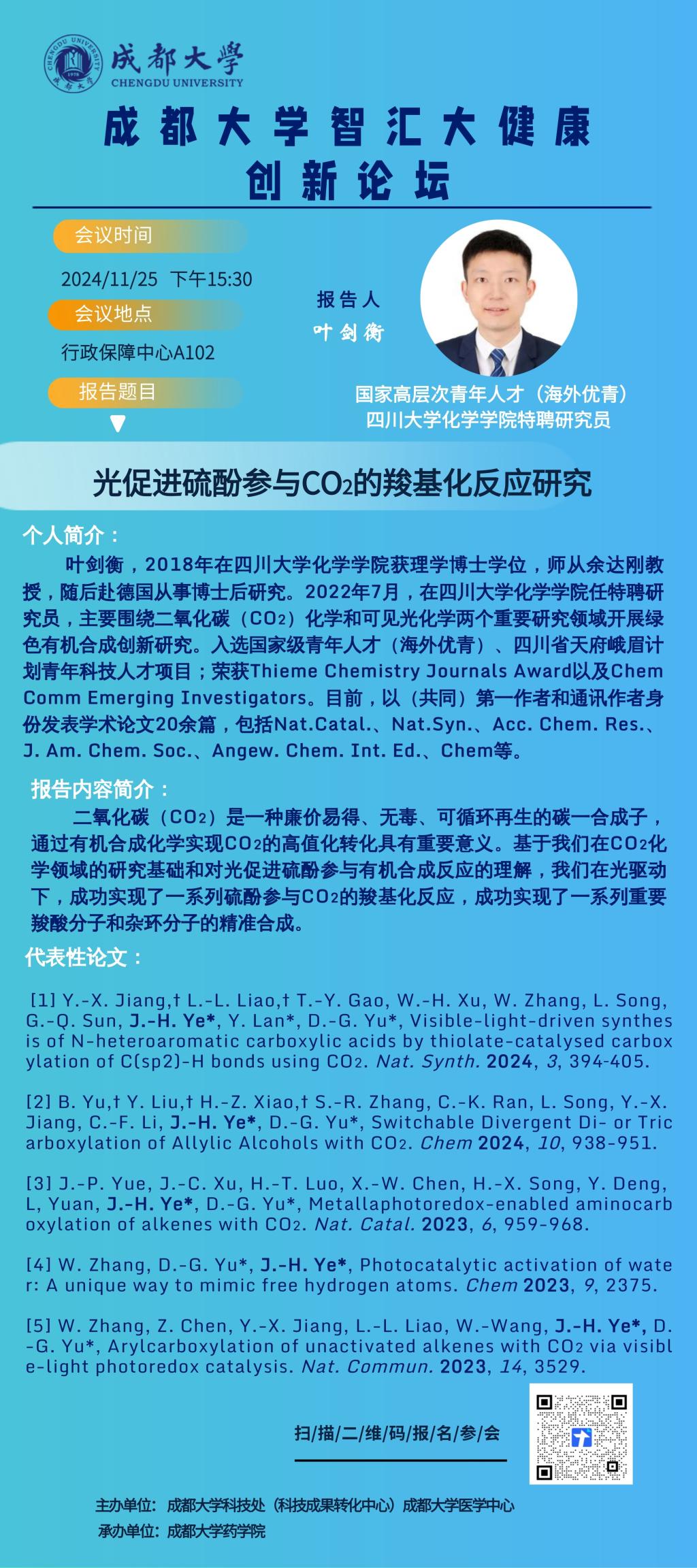 草榴社区 智汇大健康创新论坛—光促进硫酚参与CO₂的羧基化反应研究