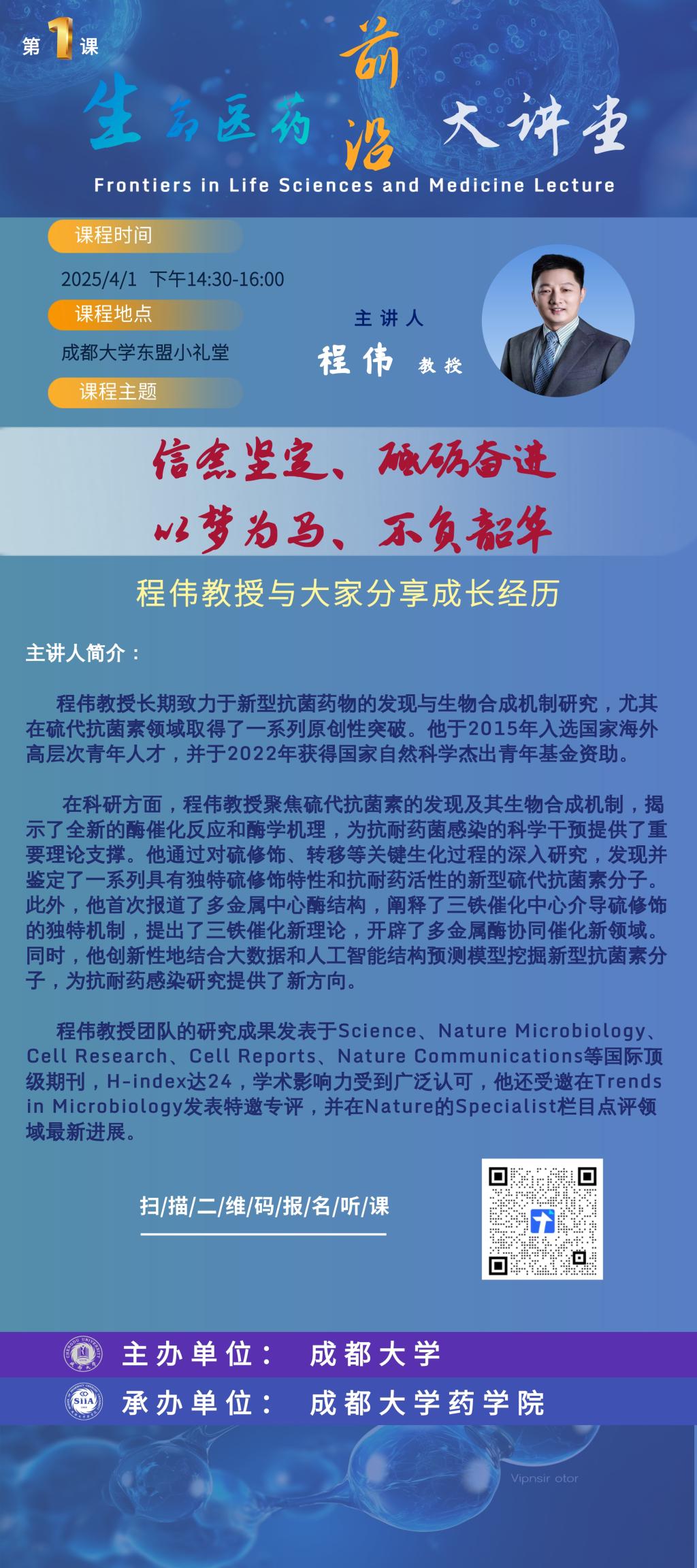 【生命医药前沿大讲堂】程伟:信念坚定、砥砺奋进、以梦为马、不负韶华
