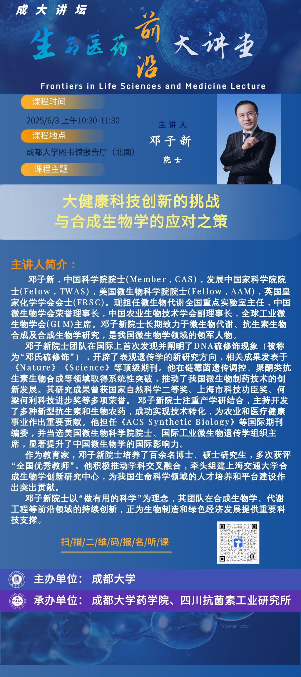 【生命医药前沿大讲堂】邓子新:大健康科技创新的挑战与合成生物学的应对之策