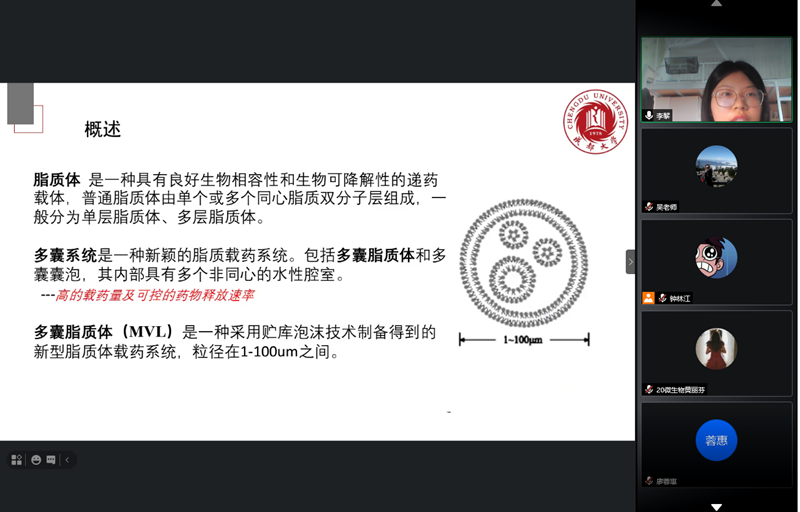 2021年研究生学术论坛之药剂学专场研讨会顺利在线上举行。研讨会由2020级药剂学专业研究生承办,邀请研究生导师任静担任学术指导老师,草榴社区