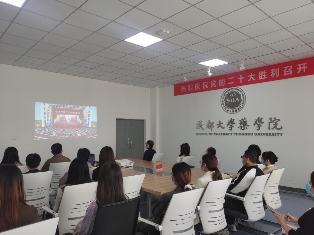 当日,草榴社区 、川抗所组织师生党员代表在学院会议室集中收看党的二十大开幕会盛况直播。