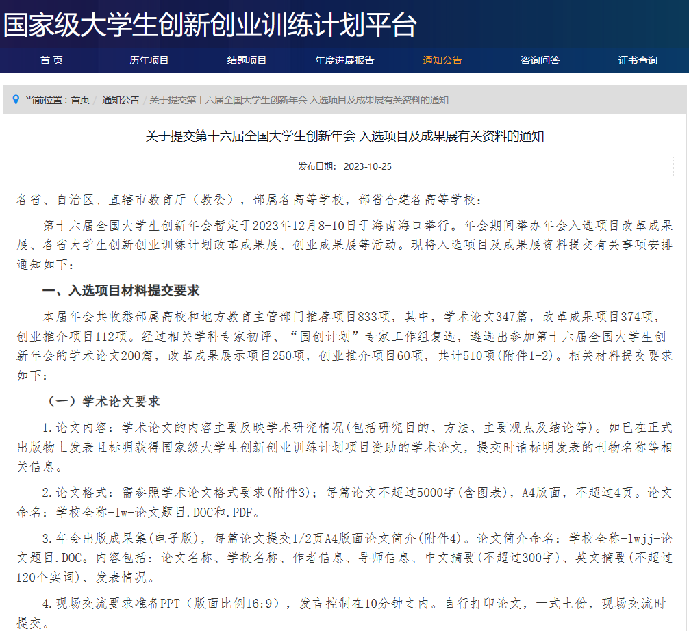 据悉,全国大学生创新年会是大学生创新创业顶级盛会,由教育部主办,每年一届,已经举行十六届,聚集近千所高校上百万学生参与。本届年会,共收悉部属高校和地方教育主管部门评选推荐项目833项。