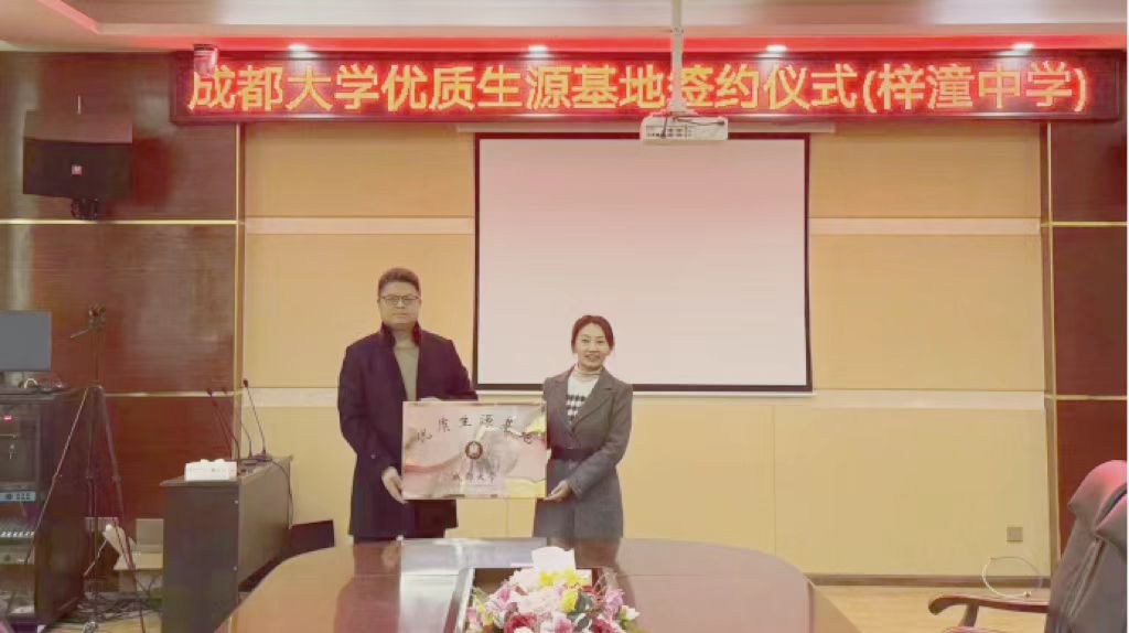 贾爱琼代表草榴社区 向梓潼中学赠与了草榴社区 优质生源基地挂牌。