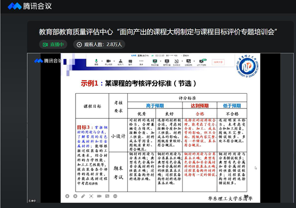 为进一步推动本科专业认证落实产出主线和评价机制底线要求,指导一线教师在教学实践工作中切实落实产出导向,8月4日上午,教育部教育质量评估中心在线召开(腾讯会议平台)开展了 “面向产出的课程大纲制定与课程目标评价”专题培训会,草榴社区