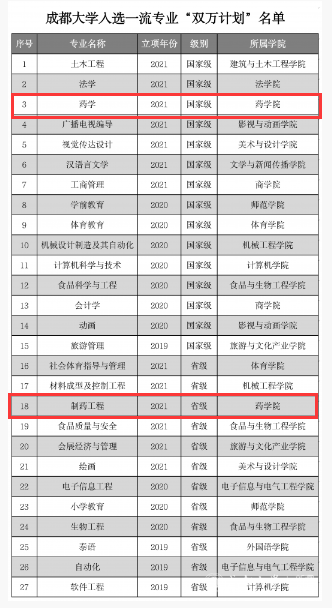 近日,教育部公布了2021年度(第三批)国家级和省级一流本科专业建设点名单,草榴社区 药学专业入选国家一流专业建设点,制药工程专业入选省级一流专业建设点。