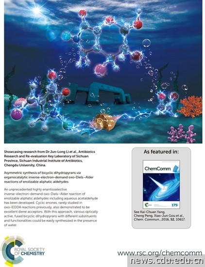 本网消息(文/冷海军)近日,英国皇家化学会主办刊物《Chemical Communications》刊发了川抗所一项最新科研成果,并被列为封面文章(back cover paper),就该项课题研究工作进行了重点介绍。 &nbs...