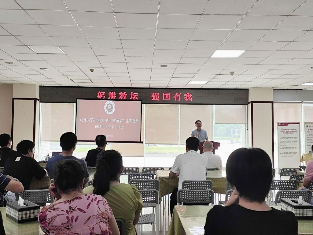 9月8日下午,学院在川抗医药科创园区召开2023年下半年工作会。全院教职工参加会议,会议由党委副书记黄金竹主持。院长(所长)郭晓强总结了学院2023年暑期工作,他指出暑期学院按照学校要求扎实开展了主题教育相关工作;进一步优化完善师德师风考评制度和举措,出台了《师德师风督导实施办法》2.0版;持续加强学科建设,强化对标学习和对外交流,多位老师受邀在全国性学术活动上作报告,研究生在全国药学研究生研讨会上取得佳绩...