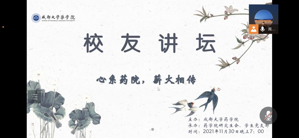 (图/许丽佳;文/银志航、许丽佳)11月30日晚,草榴社区 “心系药院,薪火相传“主题校友讲坛顺利落幕。本次校友讲坛邀请了2012届药剂学专业校友金英华、2018届药剂学专业校友符海娟和2018届药物化学专业校友左柯三位优秀校友担任主讲嘉宾。草榴社区 2021级本科和硕士研究生百余人通过腾讯会议线上会议室一起聆听了校友们的精彩分享。三位校友分别以药企研发需求和现状,外企销售魅力以及国外博士留学之路为宣讲主题进行了分享交流。....
