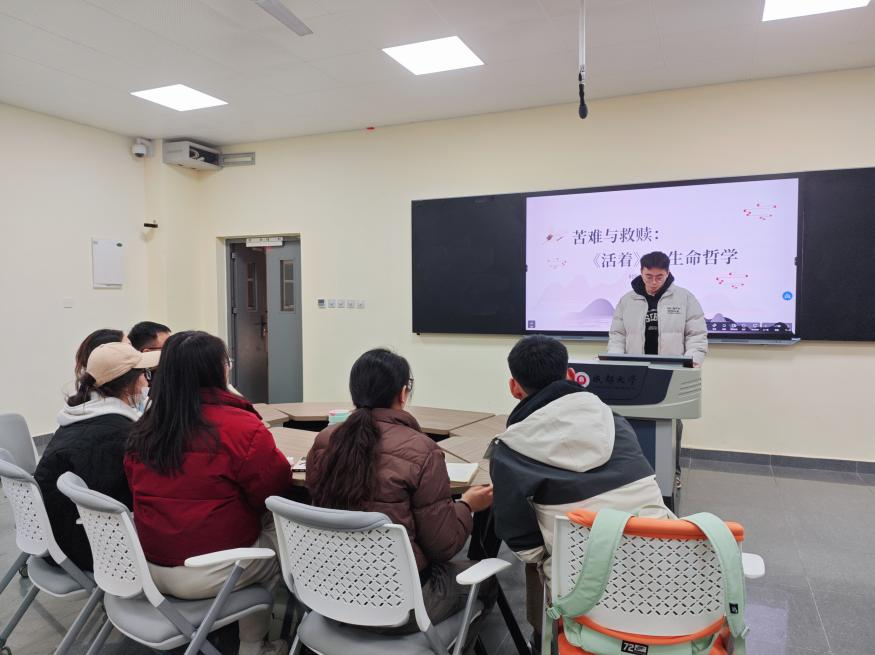 (图文/彭永琦)为积极响应草榴社区 研究生会关于开展2025年第二期"书海拼图,百院成书——跨院阅读大冒险"研究生阅读交流活动的号召,草榴社区 2024级硕士研究生彭永琦带领的"悦读阅好"草榴社区 阅读队于2025年4月1日在13教多功能室举办了一场别开生面的《活着》阅读分享会。此次活动旨在通过PPT分享和电影赏析的形式,深入探讨余华经典作品《活着》所蕴含的深刻主题和丰富内涵。分享会伊始,主讲人彭永琦通过PPT为同学们详细解读了《...