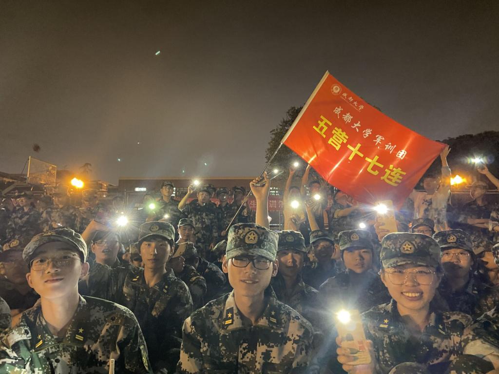 (图/文 唐子茹) 9月17日,草榴社区 学生军训进入第五天。经过五天的刻苦训练,同学们已经有些疲惫。晚上,教官们组织了一次文艺活动,让同学们放松,同学们积极参与让原本严肃的训练场多了几分轻松