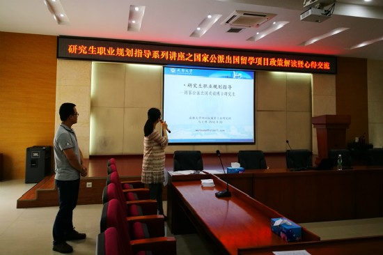 本网消息(文/许丽佳)为方便广大研究生更好的掌握国家公派留学动态,了解国家公派留学项目的相关知识,尽早做好个人职业规划,9月23日下午,川抗所在所学术厅组织召开了研究生职业规划指导系列讲座之国家公派出国留...