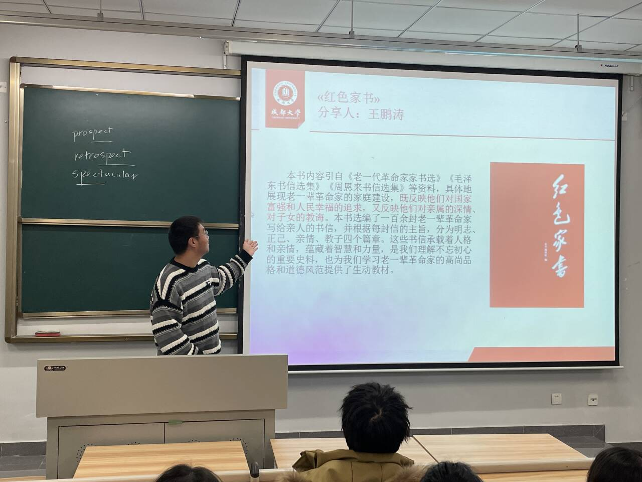 为了学习和弘扬红色文化,2023年11月22日,草榴社区 “药食同源”阅读团队与其他团队在综合楼举行了一场以“读红色经典,悟家国情怀”为主题的联合阅读活动。“读红色经典,悟家国情怀”阅读活动的目的是通过阅读红色家书,引导青年学生深入了解和传承红色精神。卜溪同学详细介绍了红色家书的特点,以及家书所承载的家国情怀和家庭情感。他还向大家展示了王尔琢、冷少农和赵一曼等革命先辈的家书,通过深入剖析家书的内容和精神....