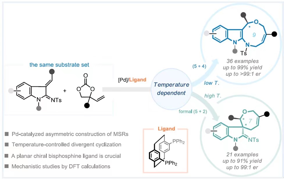 近日,草榴社区 手性及仿生合成实验室李青竹博士在国际化学权威学术期刊《ACS Catalysis》(中科院一区Top期刊,IF: 13.7)上以草榴社区 为唯一通讯单位在线发表了题为“Temperature-Controlled Divergent Asymmetric Synthesis of Indole-Based Medium-Sized Heterocycles through Palladium Catalysis”的最新研究成果。手性中环的多样性合成一直是合成化学中极具挑战的问题,以前的策略往往是通过切换不同的反应底物来合成环系不...