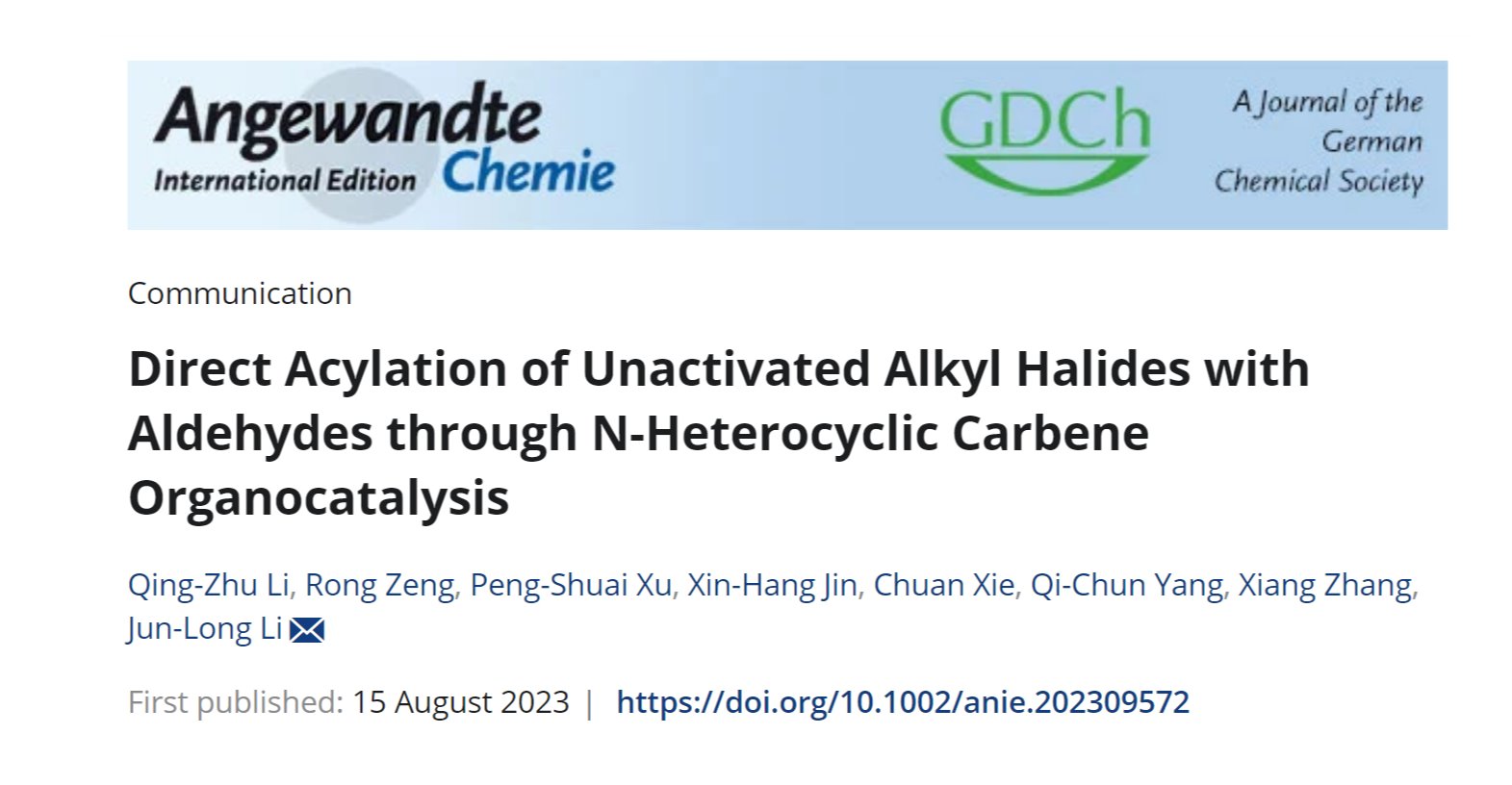 近日,草榴社区 手性药物仿生合成实验室在国际化学顶级学术期刊《Angewandte Chemie》(中科院一区,IF: 16.6)上以草榴社区 为第一单位在线发表了题为“Direct Acylation of Unactivated Alkyl Halides with Aldehydes through N-Heterocyclic Carbene Organocatalysis”的最新研究成果。草榴社区 特聘研究员李青竹,草榴社区 2017级研究生曾荣为论文共同第一作者,李俊龙教授为论文通讯作者。此外,团队其他成员,其中还包括药....